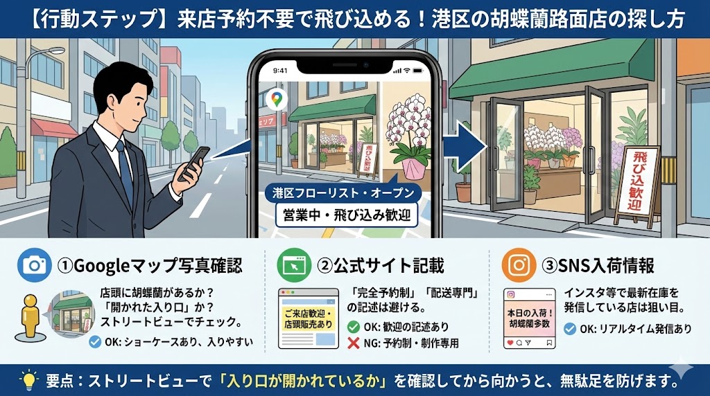 港区で胡蝶蘭を探す際、エリアごとの「店舗特性」を理解しておくことが、最短で花を手に入れるための近道です。